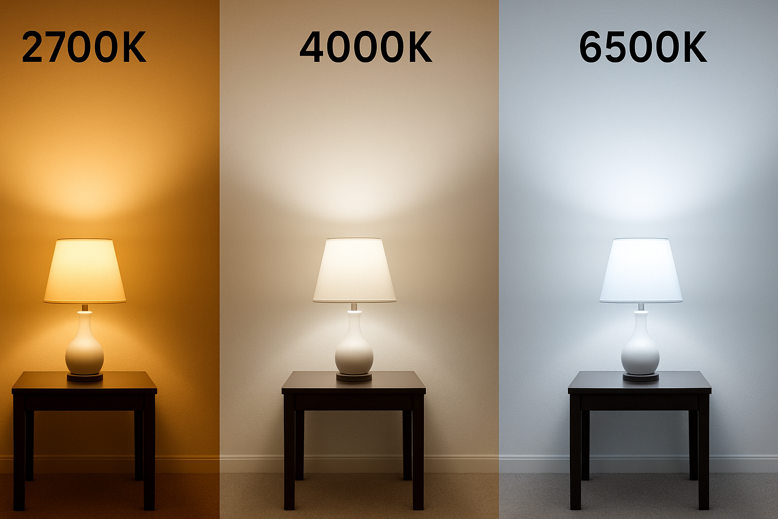 | 2700K~3000K | 노란빛, 주황빛 | 따뜻하고 아늑함 | 침실, 거실, 카페 |